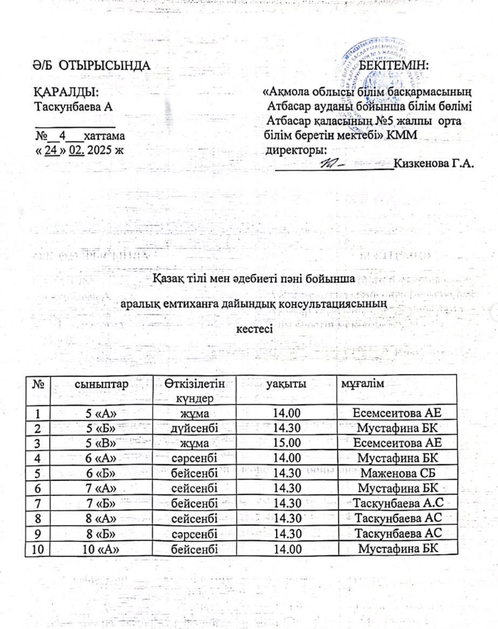 КГУ «Общеобразовательная школа №5 города Атбасар отдела образования по Атбасарскому району управления образования Акмолинской области»