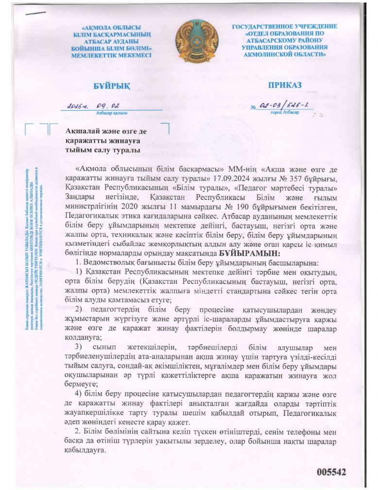 Ақшаны және басқа қаражатты жинауға тыйым салу туралы бұйрық