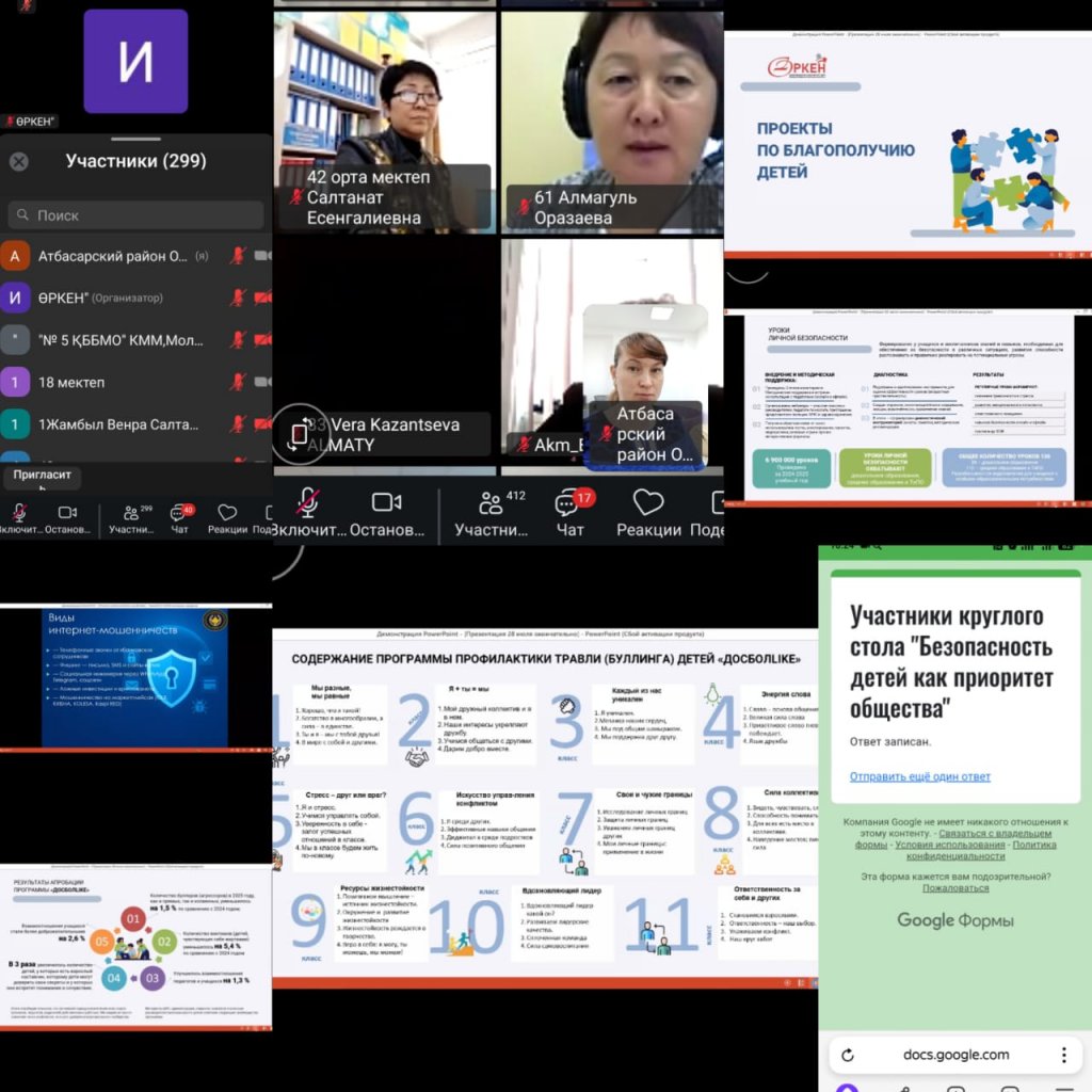 08.10.2025 ж. Атбасар қаласы №5 орта мектебінің педагог-психологтары Димке А. А. мен Красникова О. В. «БАЛАЛАРДЫҢ ҚАУІПСІЗДІГІ – ҚОҒАМНЫҢ БАСТЫ БАСЫМДЫҒЫ» тақырыбындағы халықаралық дөңгелек үстел бағдарламасына онлайн форматта қатысты.Іс-шараны балалардың әл-ауқаты...