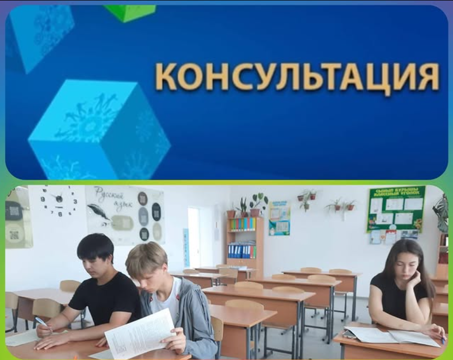 5 маусымда 11 « А « сынып оқушыларына орыс тілі мен әдебиеті бойынша қорытынды кеңес өтті. Консультацияларда емтихан материалының құрамына кіретін оқулық бөлімдерінің негізгі тақырыптары қарастырылып, үлгілік емтихан тапсырмалары талданды. Каралькевич О. А