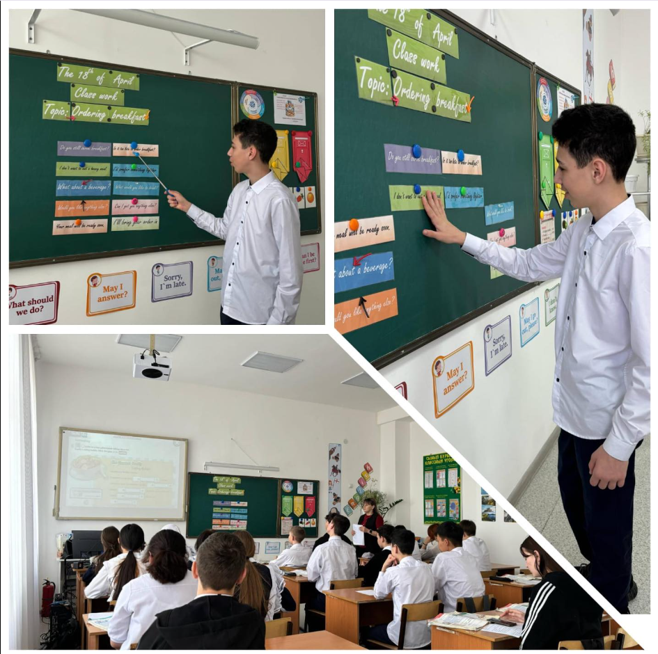 Психологиялық-педагогикалық сүйемелдеу қызметі мамандарының апталығы аясында ерекше білім беру қажеттіліктері бар балалармен жұмыс бағытында 8Б сыныпта «Ordering breakfast»тақырыбында ағылшын тілі бойынша ашық сабақ өтті.