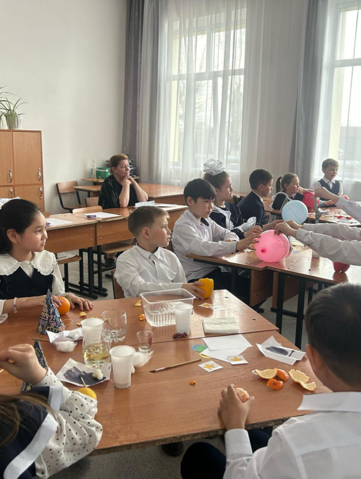 Нысаналы мектептермен жұмыс жоспары аясында 4 «Б» сыныпта «ғажайып ғылым әлемі» тақырыбында сыныптан тыс іс-шара өткізілді. Сабақ онлайн форматтағы синхронды режимде өтті. ZOOM платформасын пайдалана отырып, іс-шараға мақсатты мектептердің 5 педагогы қатыса алды. Мұғалім Садуова Надежда Нурлановна жетекшілігімен балалар ерекше қасиеттерін ашып, ең қарапайым пәндерді қызықты, көңілді түрде зерттеді. «Лимонның көз жасы» мен «Лавалампа» ертегі зертханасындағы ең жарқын жаңалықтарға айналды, ал әуе шарының бетіне эфир майларының әсері ең қатты және есте қаларлық болды. Сабақ жоғары әдістемелік деңгейде өтті. Осы іс-шараға қатысқан педагогтар Надежда Нұрланқызына зерттеу қызметіне қызығушылықты дамыту, бастауыш сынып оқушыларының ой-өрісін кеңейту бойынша жұмыста көрсеткен тәжірибесі үшін алғыстарын білдірді.
