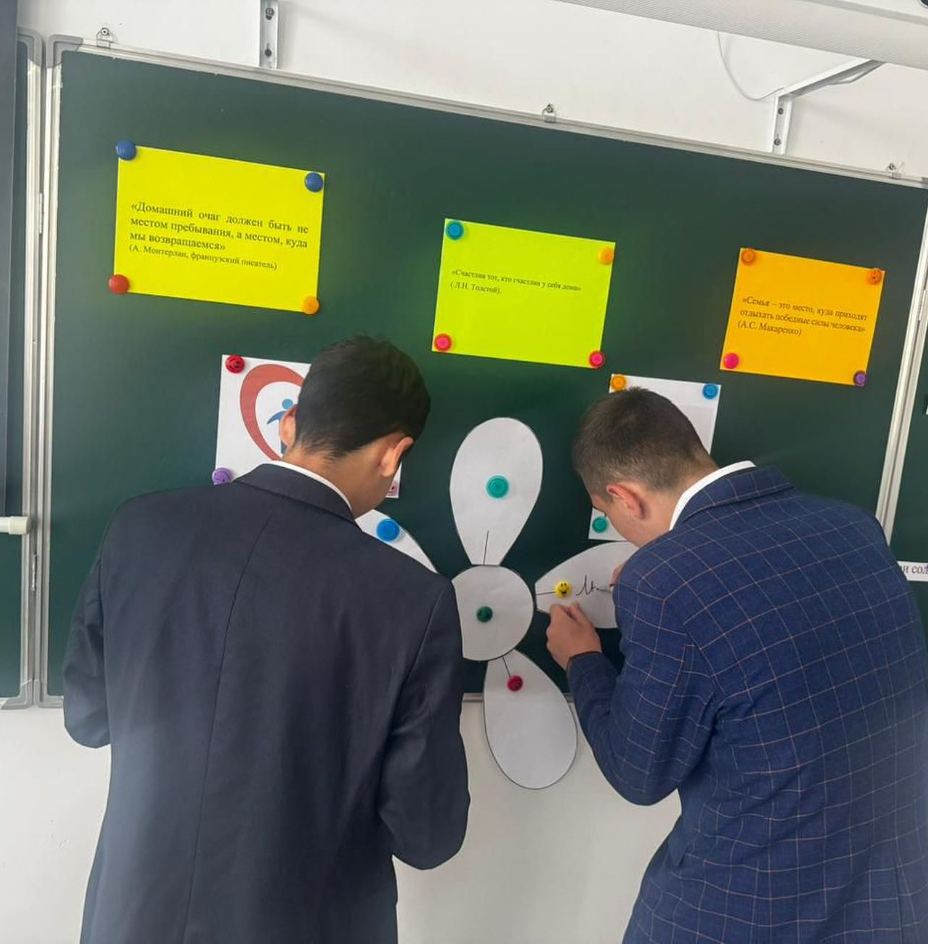 “Отбасы — бақыт пен махаббаттың қайнар көзі” тақырыбындағы сынып сағаты оқушылар үшін нағыз мереке болды. Оқушылар отбасының біздің өмірімізде қандай рөл атқаратынын және оның эмоционалды күйімізге қалай әсер ететінін талқылаудан бастады. Әрқайсымыз отбасы ол үшін нені білдіретіні және қандай сәттер қуаныш пен бақыт әкелетіні туралы өз ойларымызбен бөлістік.