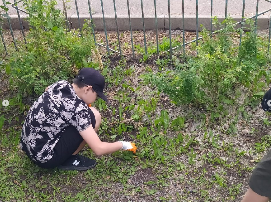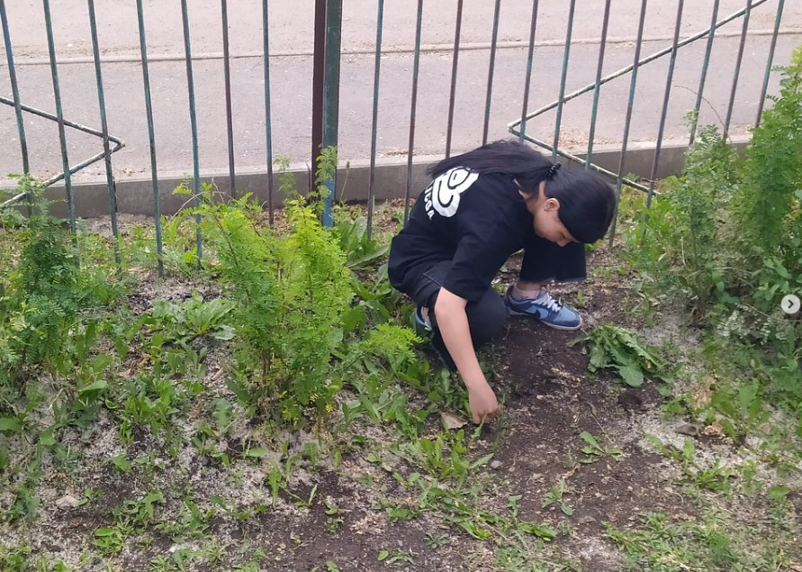 Балалар қоқыстарды жинап, гүлзарларды арамшөптерден тазартып, өсімдіктерді суарып, жаңа гүлдер отырғызды. Аумақ тазартылып, абаттандырылды.
