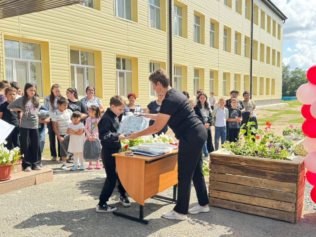 Жаңа оқу жылы қарсаңында Ольга Викторовна Харламова оқушыларға мектеп сөмкелерін өз қолымен табыстап, жаңа оқу жылында сәттілік тіледі.