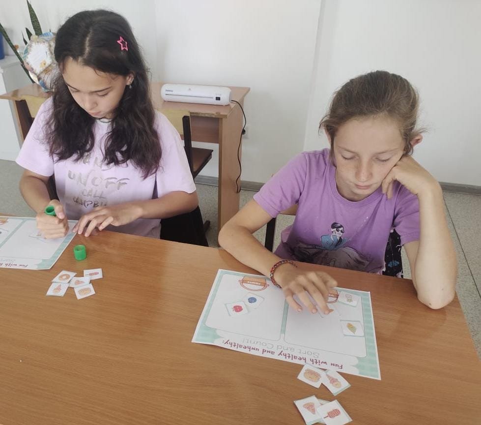 Бүгін ағылшын тілі бойынша жазғы тілдік алаңда "Food and Healthy" тақырыбында сабақ өтті. Балалар қандай тамақтың пайдалы, ал қайсысының зиянды болып саналатынын белсенді түрде талқылады, тақырып бойынша сөздік қорларын кеңейтті. Ерекше қызығушылық тудырған ойын — "Find the Words in Rice", бұл ойында оқушылар күріштің ішінен тағамға байланысты ағылшын сөздерін іздеді. Сондай-ақ балалар өздерінің тамақтану әдеттерімен бөлісіп, таңғы, түскі және кешкі асқа не жегенді жақсы көретіндерін айтты. Сабақ көңілді және танымдық сипатта өтіп, сөйлеу дағдыларын дамытуға және салауатты өмір салты туралы түсінік қалыптастыруға ықпал етті.