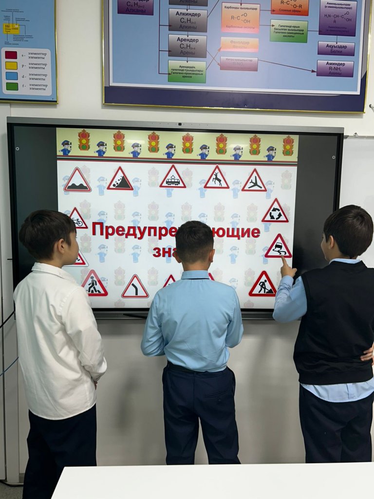 Бүгін мектепте 5 және 6 сыныптар арасында «Жол белгілері – қауіпсіздік кепілі» тақырыбында танымдық класс сағаты өтті. Іс-шараның мақсаты – оқушылардың жолда жүру ережелері туралы білімін арттыру, қауіпсіздік дағдыларын қалыптастыру және жол белгілерінің маңызын түсіндіру болды. Сабақ барысында балалар түрлі белгілердің мағынасын танып, қызықты сұрақтарға жауап берді, топтық тапсырмалар орындады. Оқушылар өз білімдерін ойын түрінде көрсетіп, белсенділік танытты. Класс сағатының соңында жол қозғалысы ережелерін сақтау – әр адамның өмір қауіпсіздігі екенін ерекше атап өтілді.Шахметова М.А- учитель казахского языка и литературы.